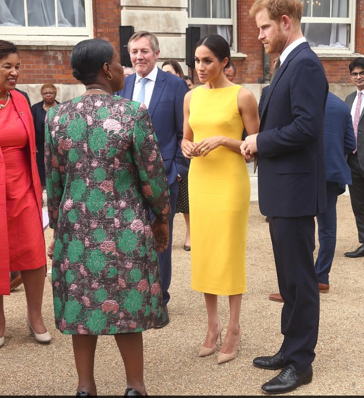 İngiltere tahtının 6. Sıradaki varisi Prens Harry ve ABD’li eşi Meghan Markle, İngiliz Milletler Topluluğu’nun genç lideriyle bir araya geldi. 36 yaşındaki Sussex Düşesi, etkinlikte Lady Gaga’nın tasarımcısı Brandon Maxwell imzalı parlak sarı bir elbise tercih ederek, resmi İngiliz stilinden rahat California stiline geri döndüğünü gösterdi.