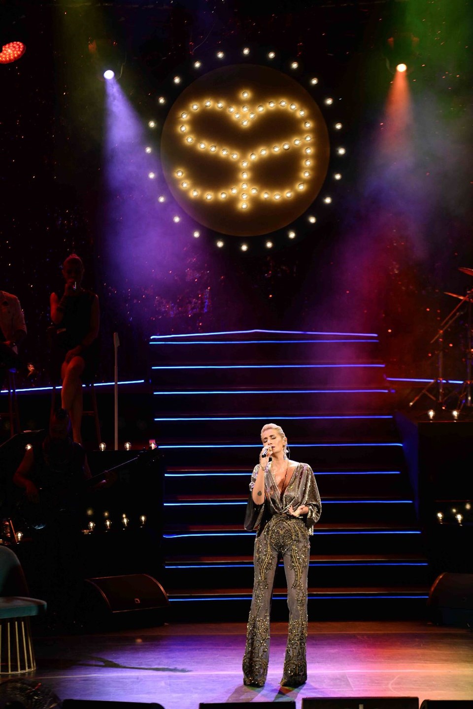 Sahneye konserin ilk yarısında Paris’ten özel olarak seçtiği Saint Laurent ikinci yarısında da A46 Tuvanam kostümleriyle çıkan güzel sanatçı Harbiye konserleri için 14 farklı kostüm tasarlattı.
