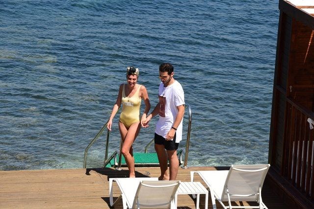 • Son dönemde kilo aldığı gözlenen Belevi, denize gireceği sırada objektifleri fark edince tişörtünü çıkarmaktan vazgeçti.