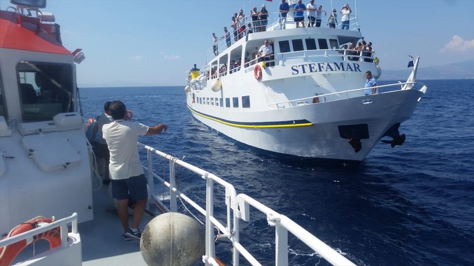 Kurtarma botuna Sahil Güvenlik Komutanlığı botu da eşlik etti. Burada zodyak botlarının da yardımıyla gümrük alanına yanaştırılan feribottan güvenli şekilde karaya indirilen yolcular, daha sonra gümrükten geçti.