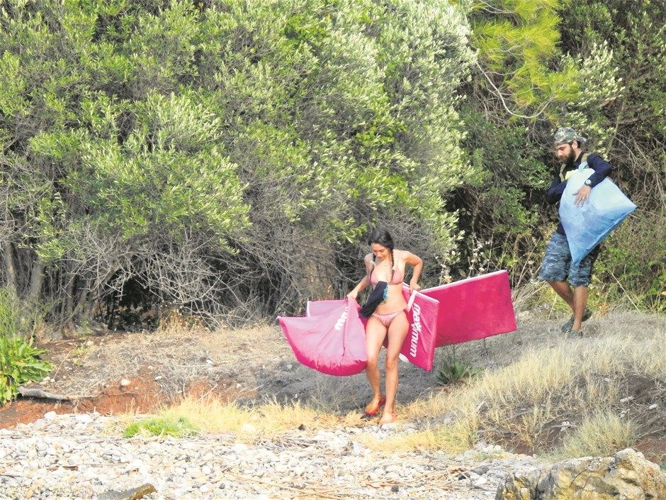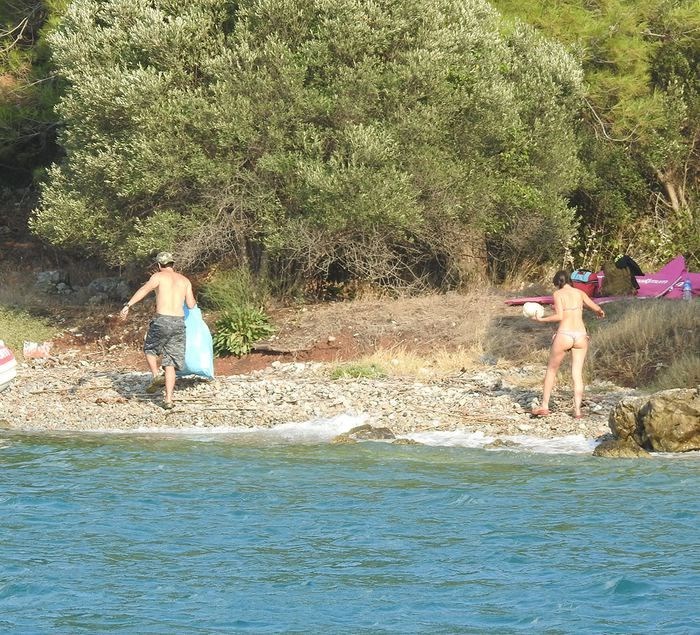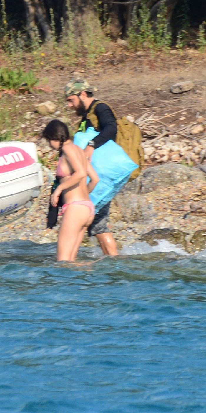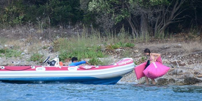 Sahilde yürüyüş yapan çift, daha sonra ayarladıkları bota binerek, rotayı gözlerden uzak bir koya çevirdi.