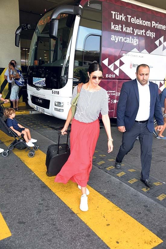 Çeşme’den tek başına dönüş yapan Ahu Yağtu,muhabirlerin sorularını duymazlıktan geldi.