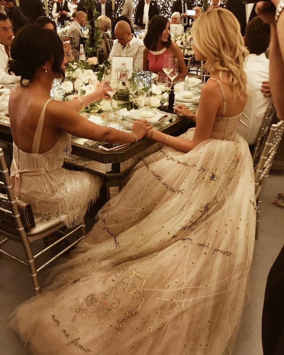 Chiara düğününde giydiği ikinci elbisede Angelinüa Jolie’nin duvağında çocuklarının çizimlerine yer vermesine benzer bir tercihte bulundu.