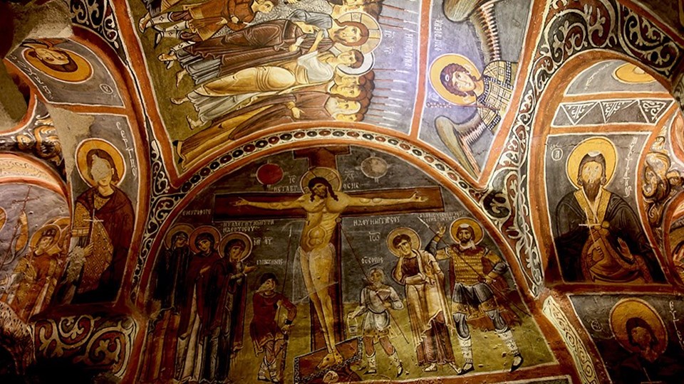 Göreme Açık Hava Müzesi içindeki Karanlık Kilise, İncil’in yanı sıra Musevilerin kutsal kitabı Tevrat’ta anlatılan bazı olayların da fresklere (Kireç suyunda eritilmiş madeni boyalarla yapılan duvar resmi) işlendiği nadir inanç merkezleri arasında yer alıyor.