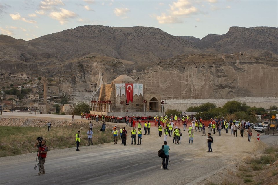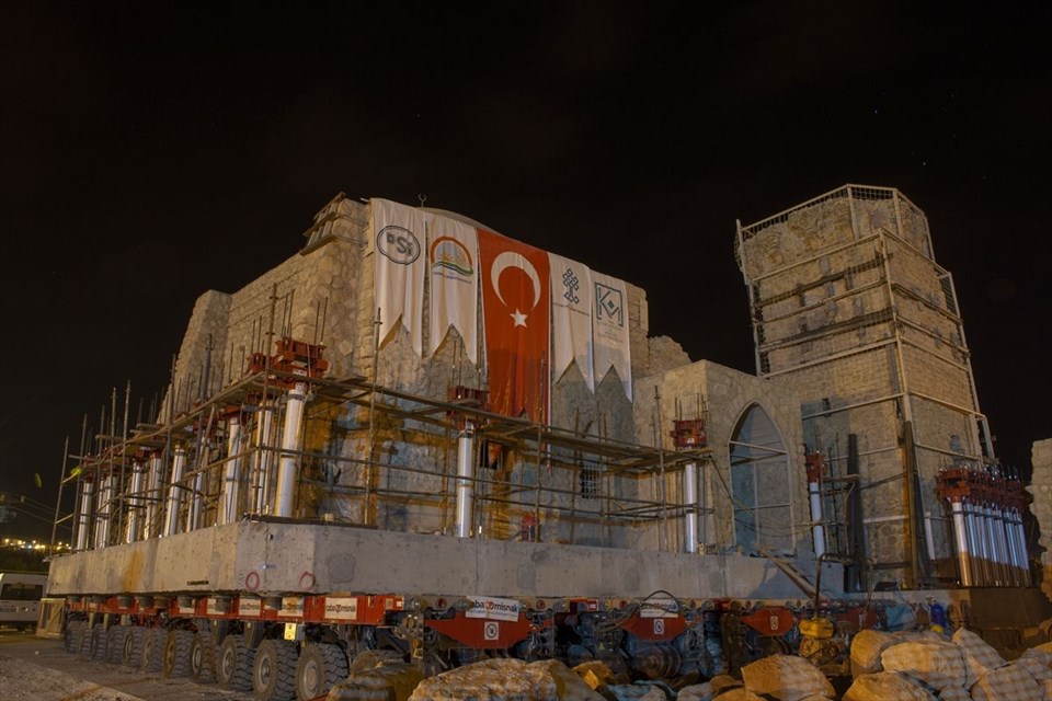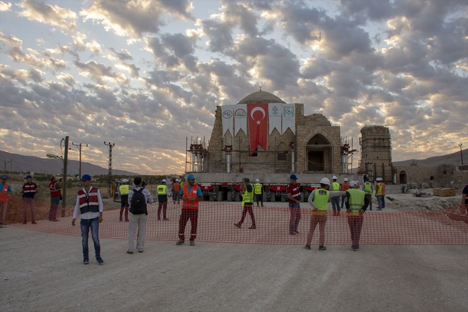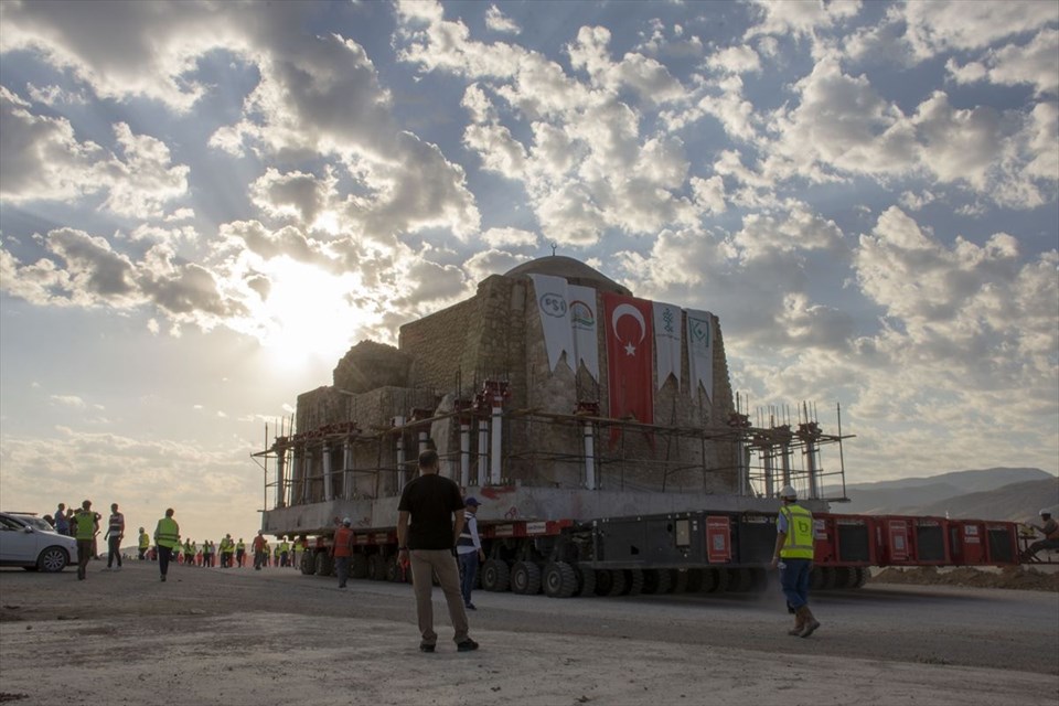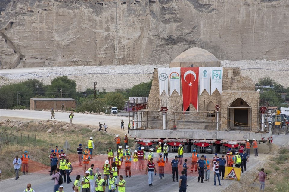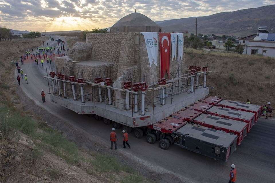 Bu kapsamda türbe, minare ve müştemilat olarak üç bölüm halinde taşınacak olan 850 ton ağırlığındaki İmam Abdullah Zaviyesi’nin gece 256 tekerlekli, kendinden tahrikli modüler sistem (SPMT) aracına yüklenen türbe bölümünün saat 06.00’da başlayan, yaklaşık 2 bin 400 metre uzaklıktaki yeni yerine nakli tamamlandı.