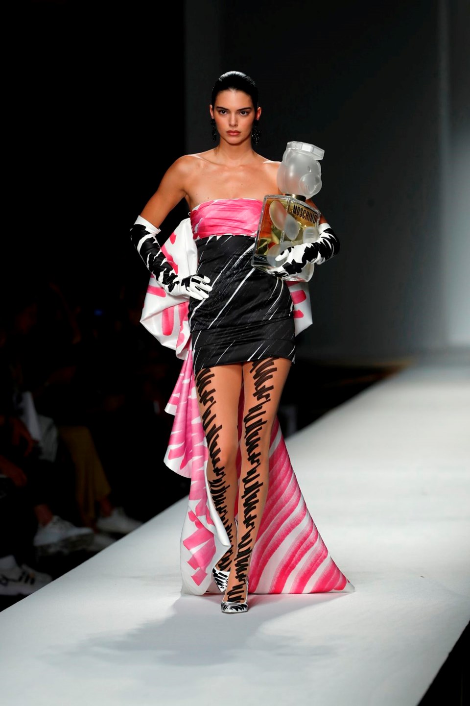 22 yaşındaki Jenner ise moda evinin parfüm şişesiyle birlikte yürüdü.