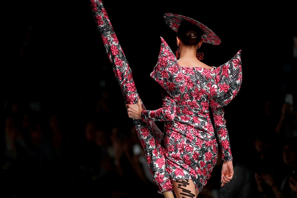 Eskiz desenli çorabı ve oldukça uzun duvağıyla gecenin en çok ilgi çeken tasarımı olan parçayı taşıyan 23 yaşındaki model izleyicilerden büyük beğeni topladı.