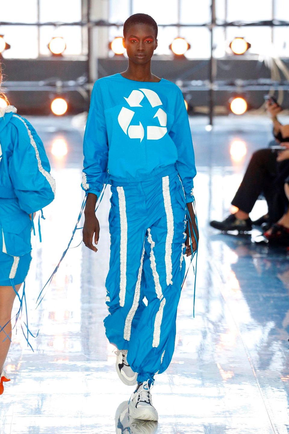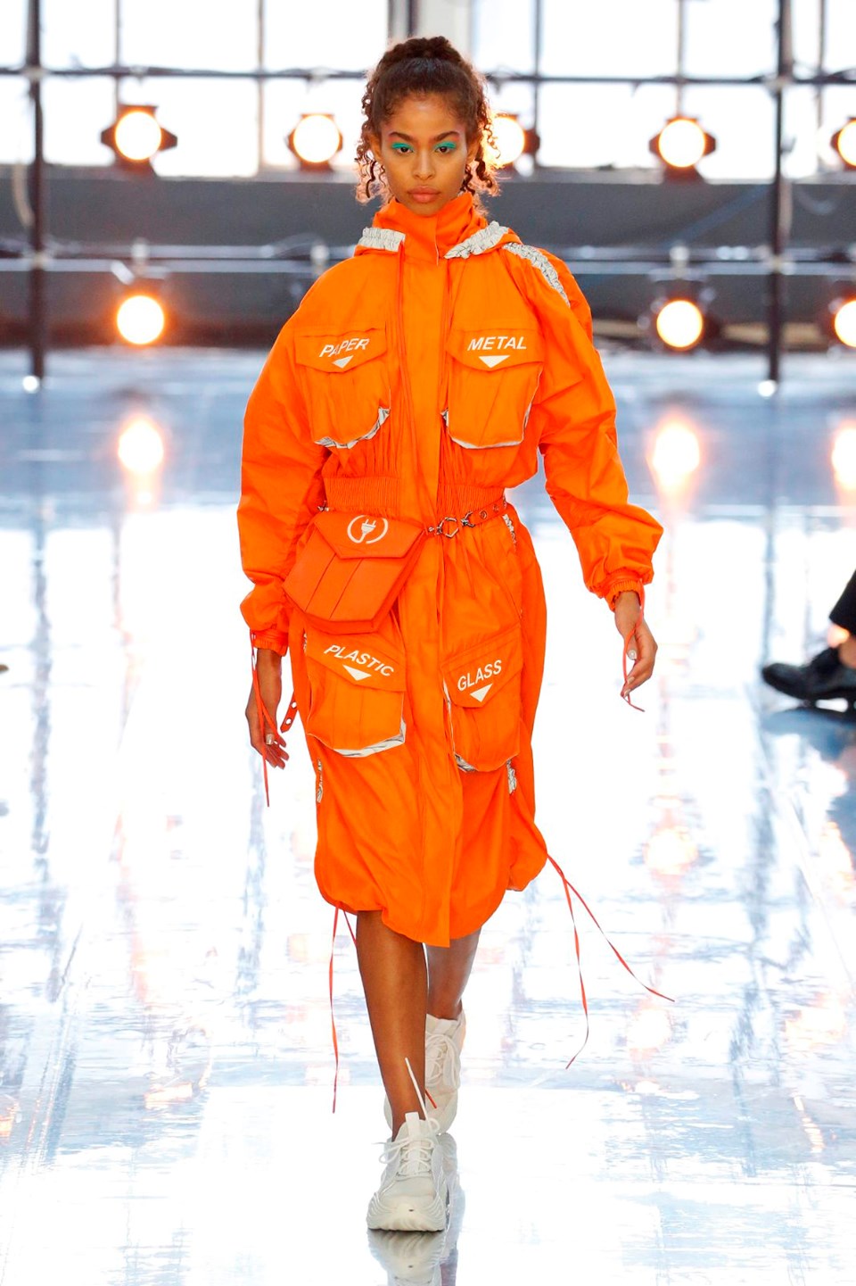 İtalya’nın Milano kentindeki moda haftası çevre kaygılı bir kreasyonla başladı. Byblos modaevinin defilesinde geri dönüşümlü çöp kutularından esinlenerek tasarlanan ceplere sahip mont ve kumaş tasarruflu mini etek kreasyonu dikkat çekti. Defilede kreasyonu taşıyan ünlü top model Thylane Blondeau büyük alkış aldı. İşte çevre kaygılı defileden kareler…