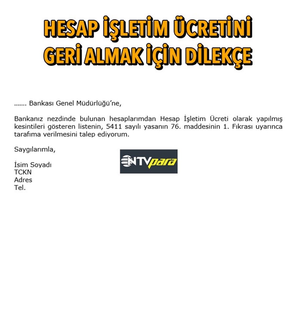 Bu düşüncemizden ötürü, ‚hesap işletim ücretlerinizi geri alıyoruz‘ diyerek ortaya çıkmasını beklediğimiz bu dolandırıcıların, bedel karşılığı gönderecekleri birkaç boş dilekçe örneği ile yine tüketicileri mağdur etme ihtimaline karşılık uyarıyoruz.