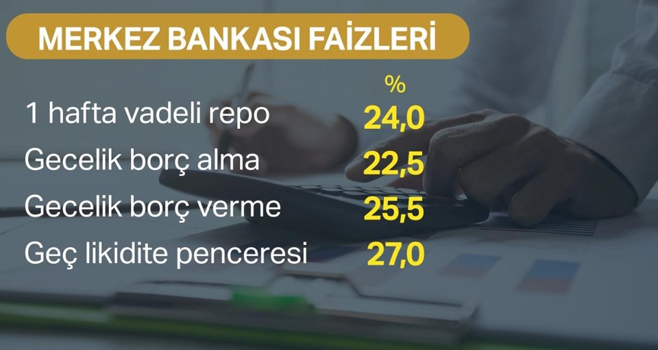 Politika faizi olan bir hafta vadeli repo faizi yüzde 17,75’ten yüzde 24’e yükseltti. Böylece faizde 625 baz puan artış yapılmış oldu.