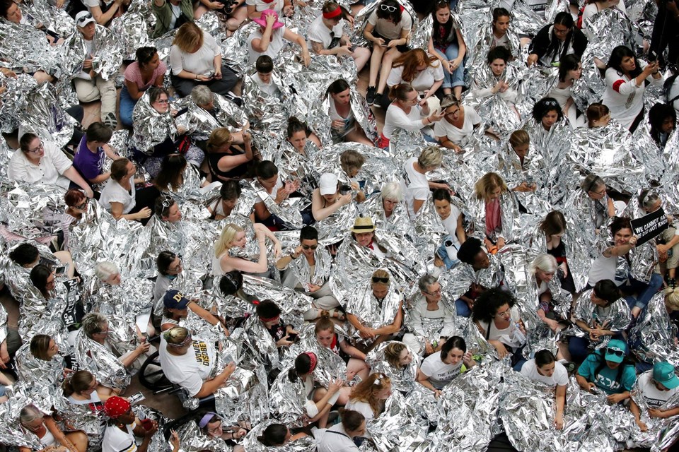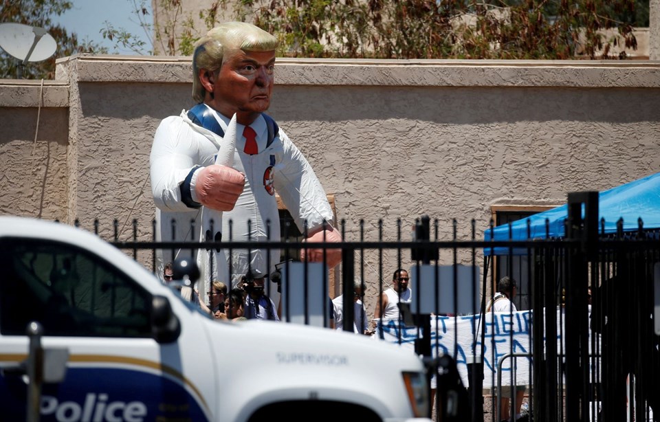 Kadınlar ABD hükümetinin göçmen politikasını ve kayıt dışı göçmenlerin Meksika sınırında çocuklarından ayrılmasını protesto ederek oturma eylemi yapıyordu.