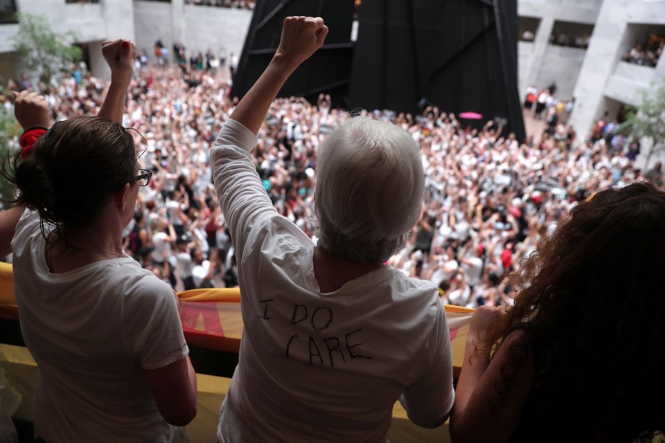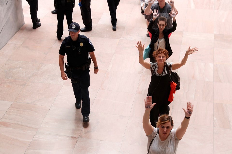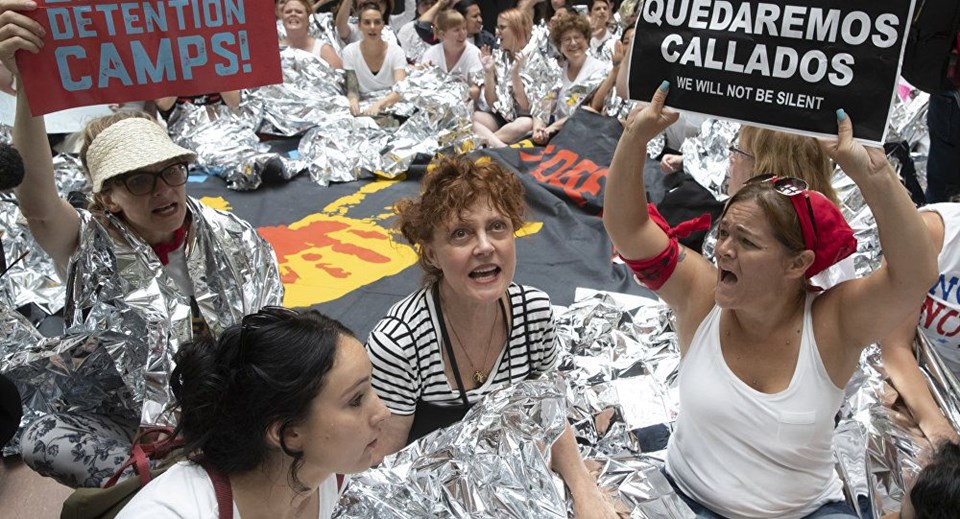 ABD yönetiminin göçmen politikasını ve kayıt dışı göçmenlerin Meksika sınırında çocuklarından ayrılmasını başkent Washington’daki bir Senato binası içinde protesto ederek oturma eylemi yapan yaklaşık 600 kadın gözaltına alındı. Gözaltına alınanlar arasında 71 yaşındaki ünlü ABD’li aktris Susan Sarandon da vardı.