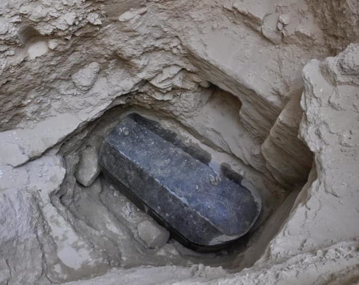 Mısır antik eserler bakanlığı siyah granitten yapılmış olan lahitin bir inşaat çalışması sırasında bulunduğunu duyurdu.
