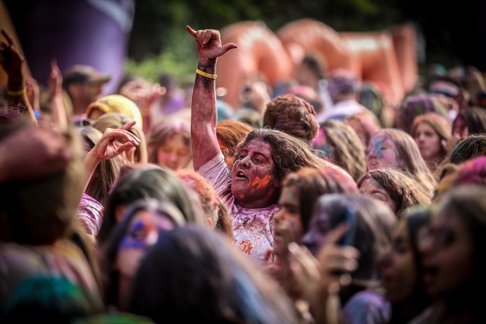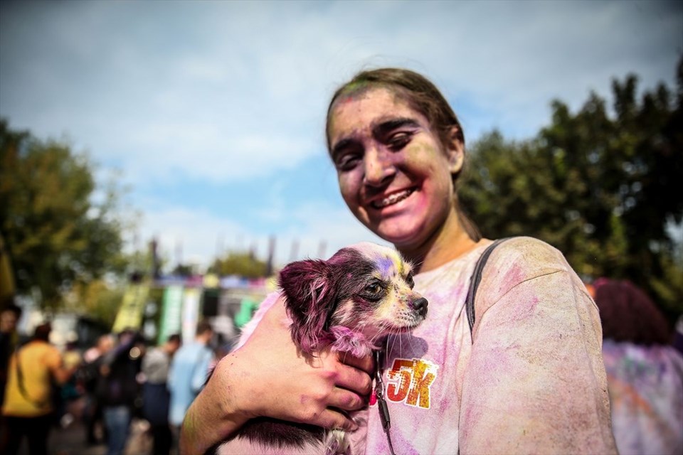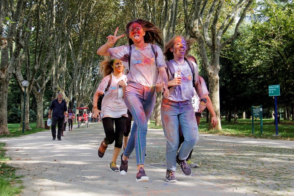 Koşucular, parkurun bitiş noktasına kıyafet ve yüzleri farklı renklere bürünmüş halde geldi. Koşuya katılanlar daha sonra müzik eşliğinde dans etti.İşte renkli festivalden yansıyan diğer kareler…