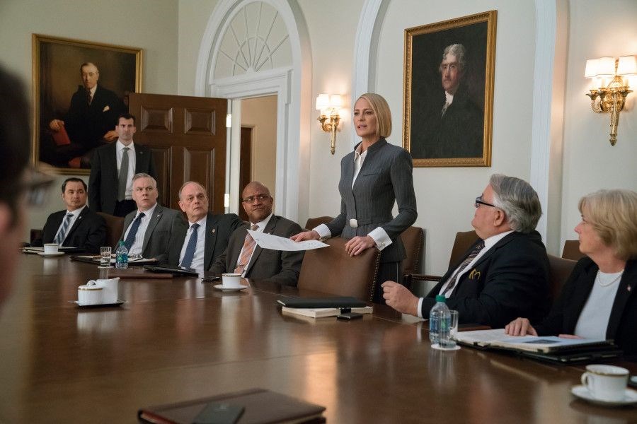 House of Cards ekrana veda etmeye hazırlanırken 6. sezona ait yeni kareler görücüye çıktı. Final sezonundan gelen ilk görsellerde Kevin Spacey’nin yokluğunda Robin Wright öne çıkıyor.