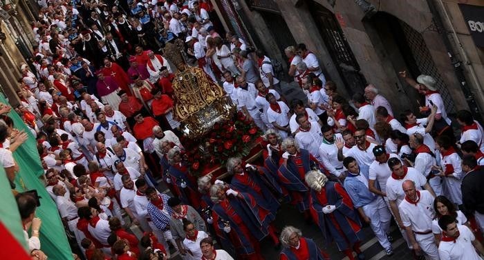 SAN FERMİN ONURUNAFestival sırasında kentte dini geçit töreni düzenleniyor. Her yıl, 7 Temmuz’da Pamplona piskoposu ve kilise temsilcisi, San Fermin figürünü Pamplona sokaklarından geçiriyor. Hazır bulunanlar, geçit alayı San Lorenzo kilisesine varana kadar kısa molalar vererek şarkılar söylüyor.