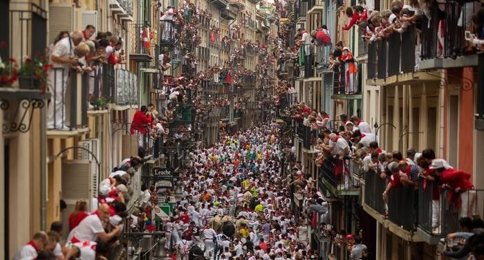 SABAH GÜRÜLTÜSÜSeyirciler sokakların kapalı taraflarında ya da manzarayı güvenli bir mesafeden daha iyi izlemek için balkonlarda yer tutuyor. ‚Boğa avı‘ 14. yüzyıldan beri yapılıyor ve her yıl dünyanın her yerinden bir milyondan fazla ziyaretçi çekiyor.