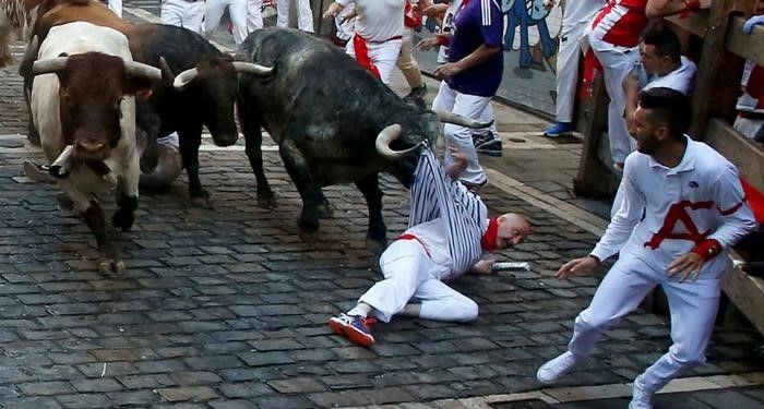 BOYNUZ DARBELERİBoğalarla yarış istenmeyen şeylerin yaşanmasına neden oluyor. Hayvanlar insanlara zarar verebiliyor. Geçen Cumartesi dört katılımcı yaralandı. Bir tanesine boğanın boynuzları saplandı. 1911 yılından bu yana koşuda 15 kişi hayatını kaybetti. Son ölüm 2009’da meydana geldi.