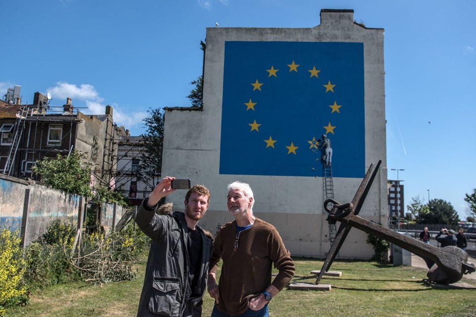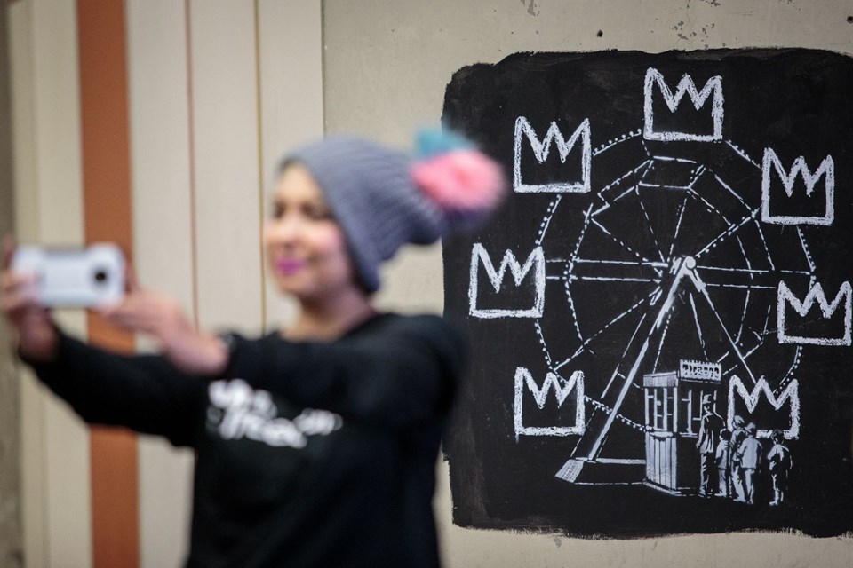 Banksy buna cevaben “Bunun benimle hiçbir ilgisi olmadığını biliyorsun değil mi? Ben asla insanlardan sanatımı görmeleri karşılığında para talep etmem, eserim bir dönme dolapta sergilenmediği sürece” diyerek oyun parkını kamusal sanat alanına çevirdiği sergisine bir gönderme yaptı. Daha sonra ise “Kendisine haber verilmeden sergisi açılacak biri değilim biliyorsun değil mi?” dedi ve bu diyaloğu Instagram sayfasında screenshot alarak paylaştı.