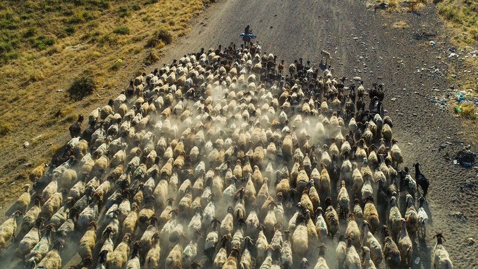 Bitlis’in Tatvan ilçesinde çobanların otlatmak için Nemrut Dağı’nın eteklerine götürdükleri koyunların yolculuğu drone ile görüntülendi.