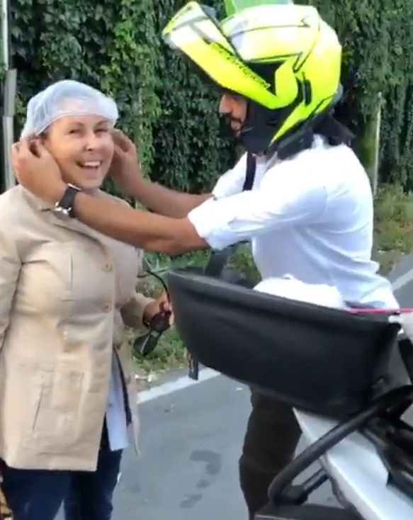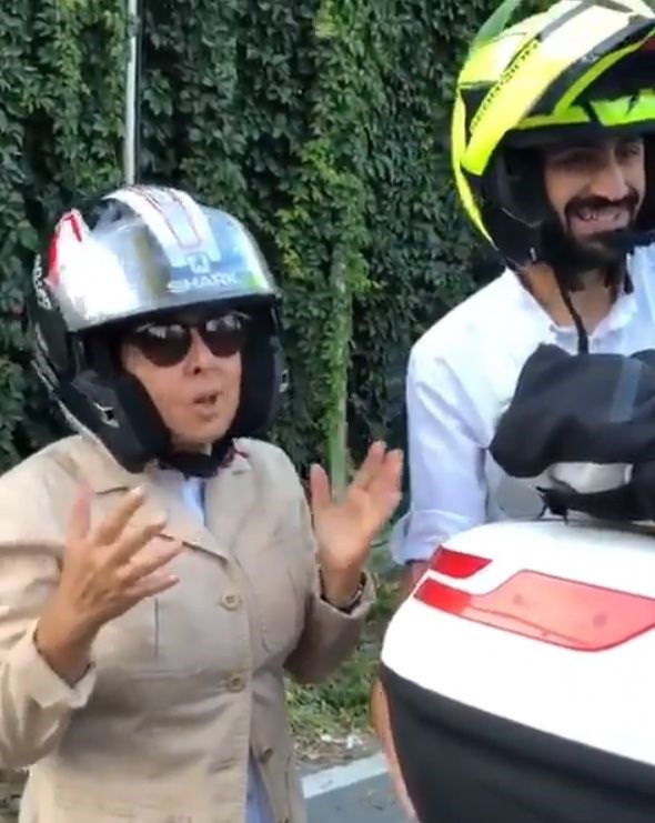 • Sürücü karşısında Nilüfer’i görünce, kısa süreli şaşkınlık yaşadıktan sonra kuralları anlattı. Sanatçı, önce bone, daha sonra da kaskı takarak motosiklete bindi.