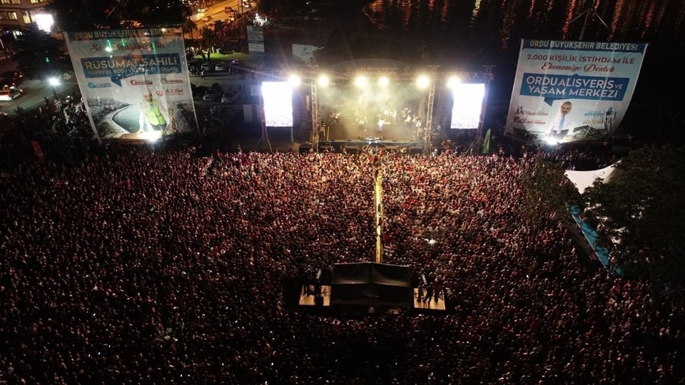Ordu Büyükşehir Belediyesinin yeni düzenlediği 60 bin kişilik konser ve miting alanını dolduran 40 bini aşkın insan Murat Boz’u dinlemek için izdiham oluşturdu.