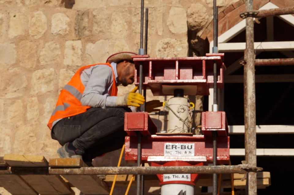 Dün başlayan ancak hava sıcaklığının mevsim normallerinin üzerinde seyretmesinden dolayı ara verilen ve bugün saat 05.00’ten itibaren yeniden başlayan çalışmalar kapsamında, kendinden tahrikli modüler sistem (SPMT) aracından krikolar üzerine indirilen tarihi hamamın yerine indirilmesi işlemi sonuçlandı.