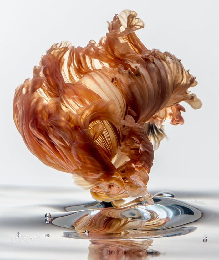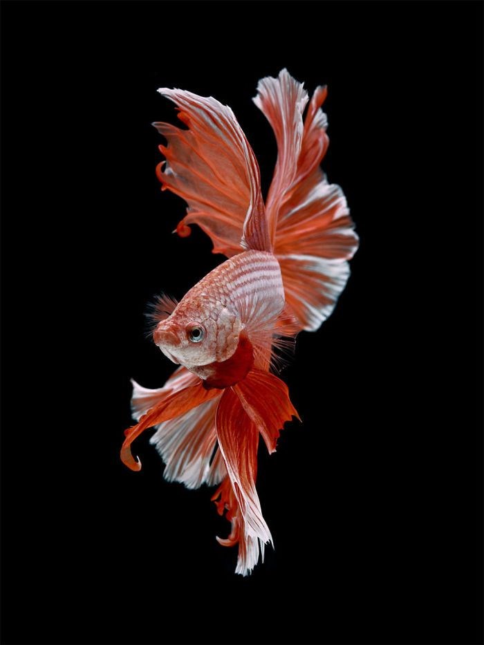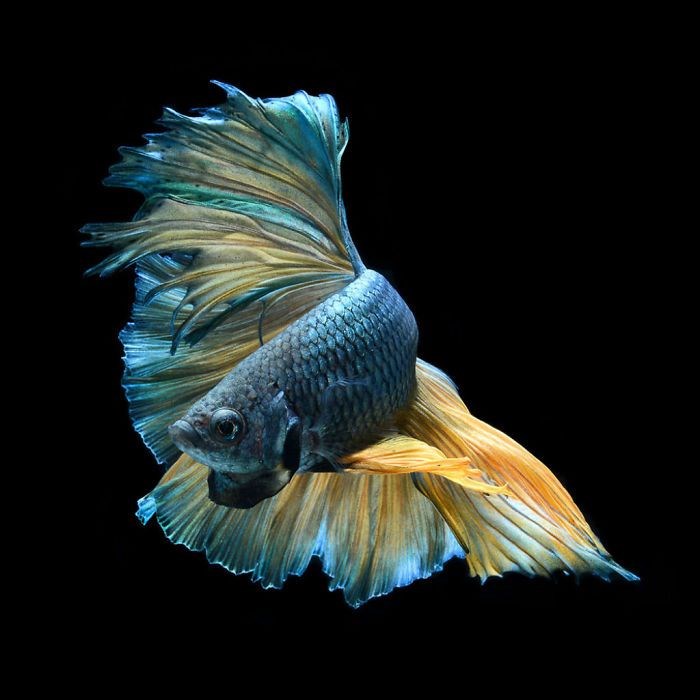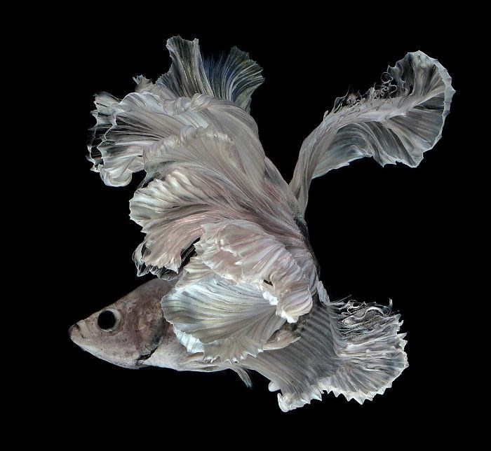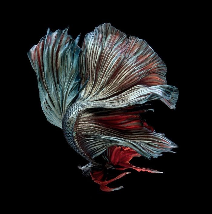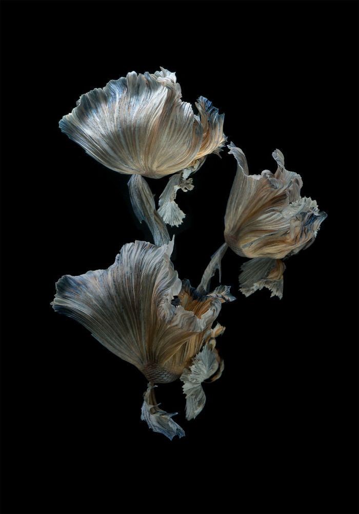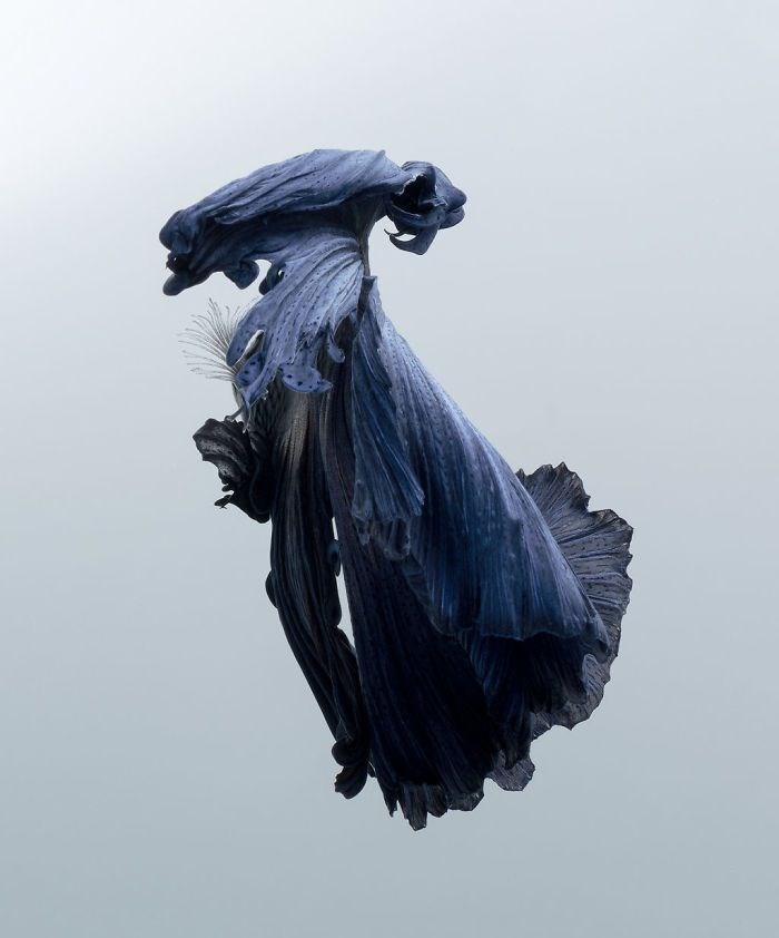 48 yaşındaki Taylandlı fotoğrafçı Visarute Angkatavanich, balıklarla sihirli fotoğraflara imza attı. Kristalize akvaryum, güçlü fotoğraf makinesi lensleri ve muazzam ışık oyunları kullanarak balıkları sanki suda yüzerken değil de havada uçarmışçasına gösterdiği fotoğrafları yarattı.
