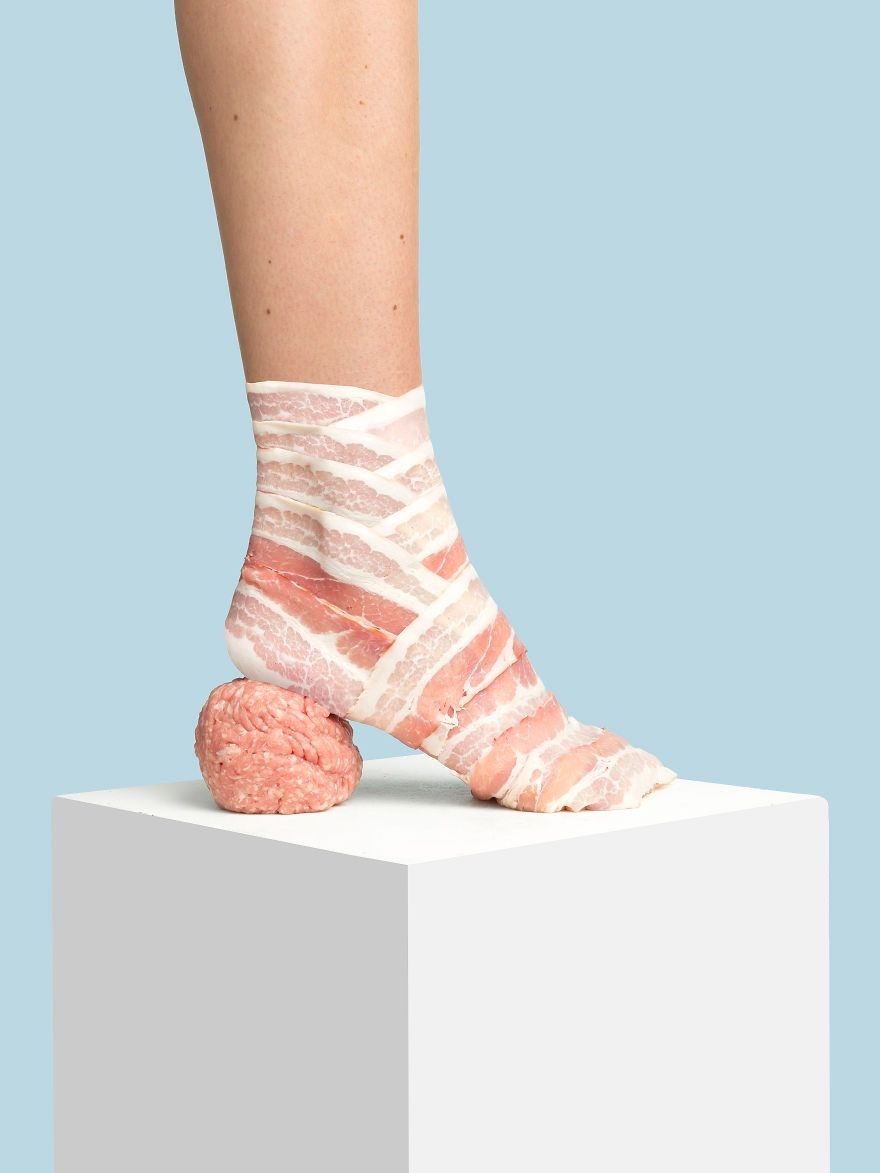 Danimarkalı fotoğrafçı Nikolaj Beyer, fotoğraflarına obje olarak ilginç ayakkabılar tasarladı. Sebze, et, balık, çikolata gibi gıda ürünlerinden oluşan ayakkabılar tam ‘yemelik’.