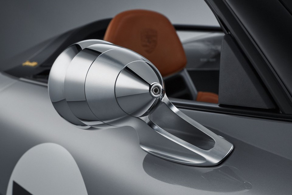 • Her ne kadar kanatlar, ön kaput ve arka kapak hafif kompozit karbon fiber materyallerden yapılmış da olsa, konsept otomobilin sahip olduğu geniş gövde tasarımı 911 Carrera 4 Cabriolet modelinden geliyor. Otomobilde kullanılan geleneksel GT Gümüşü ve GT Beyazı renkleri Porsche’nin ilk çıkan yarış otomobillerine atıfta bulunuyor. Ön kaputun ortasında yer alan 1950 tarzı merkezi yakıt deposu kapağı, Talbot şeklindeki klasik yan aynalar ve ana farların kendine has tasarımı gibi özellikler markanın geçmişinden gelen tasarım detayları olarak karşımıza çıkıyor. Far kapaklarının yüzeyinde yer alan saydam ve opak bölgeler bir ışık geçişi etkisi yaratırken aynı zamanda Porsche’nin motor sporlarındaki ilk yıllarında sıkça rastlanan far tasarımına bir gönderme yapıyor