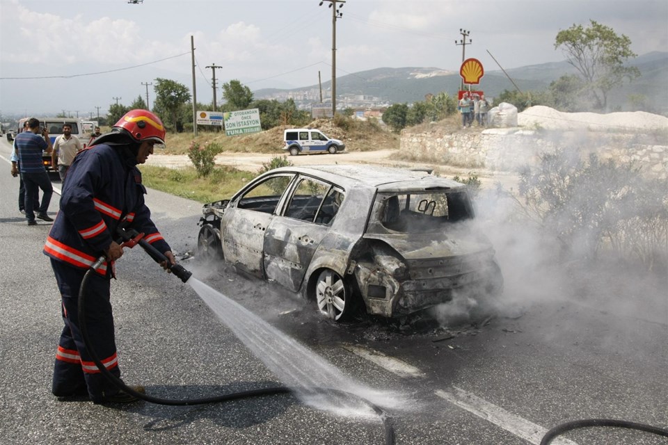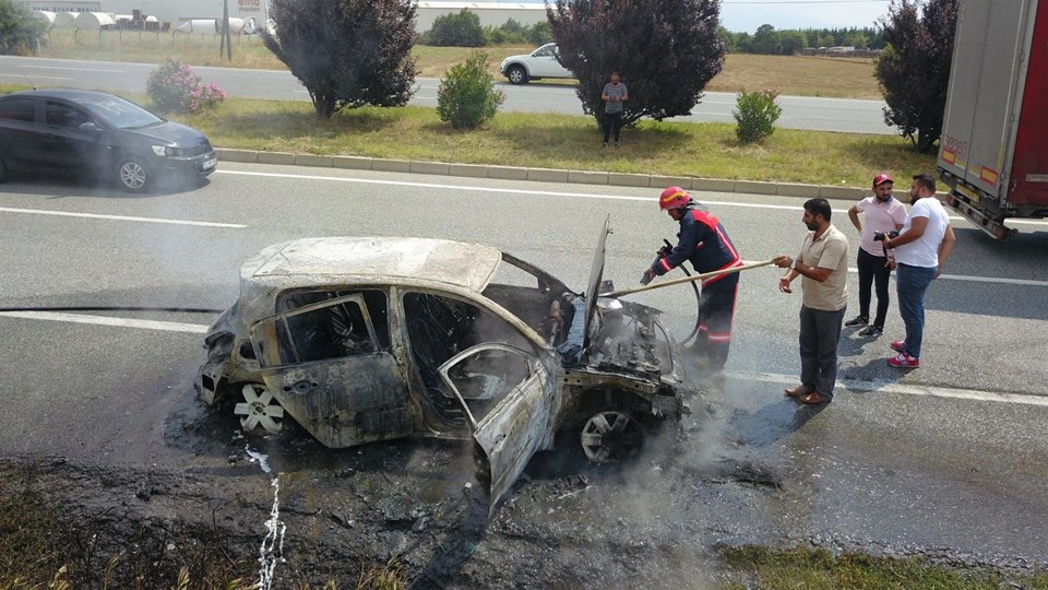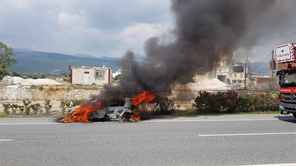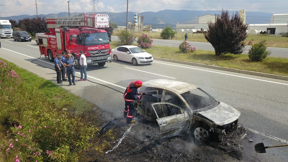 • B., aracının henüz bilinmeyen nedenle aniden alev aldığını görünce, durumu itfaiye ekiplerine bildirdi.