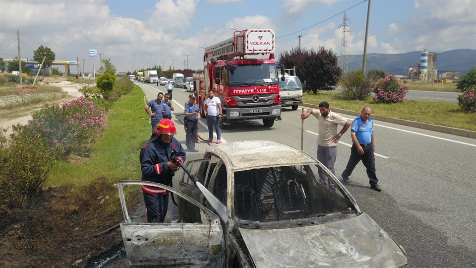 • Olay yerine gelen ekiplerin kısa sürede söndürdüğü yangında araç kullanılamaz hale geldi.
