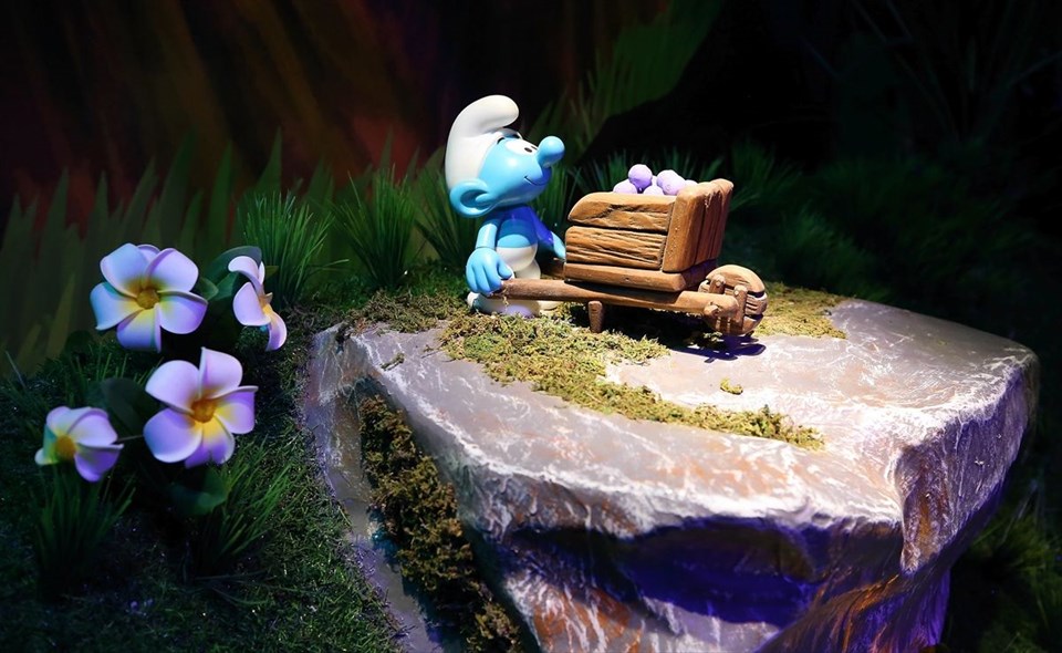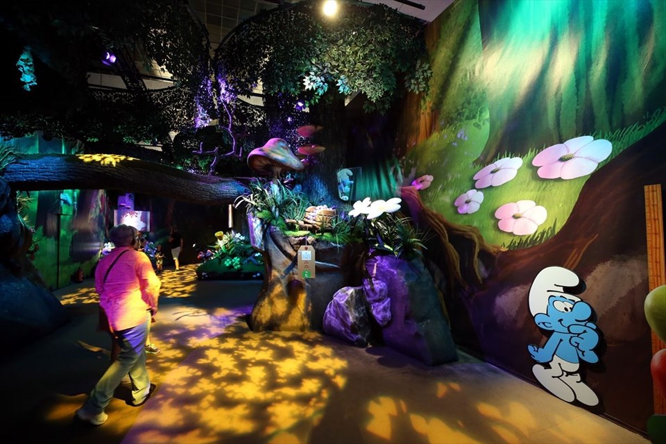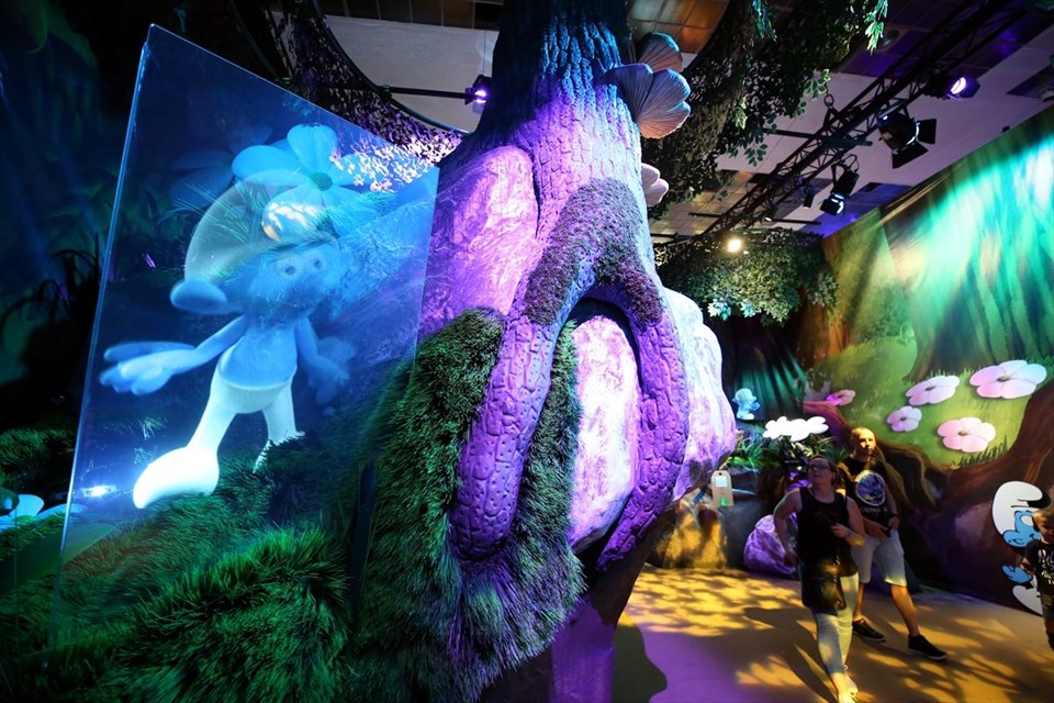 Çeşitli özel efektler ve teknolojik cihazlarla ziyaretçiler, Şirinlerle aynı boyutta hissettiren bir ortamda onların aralarına karışarak günlük yaşamlarını deneyimliyor.