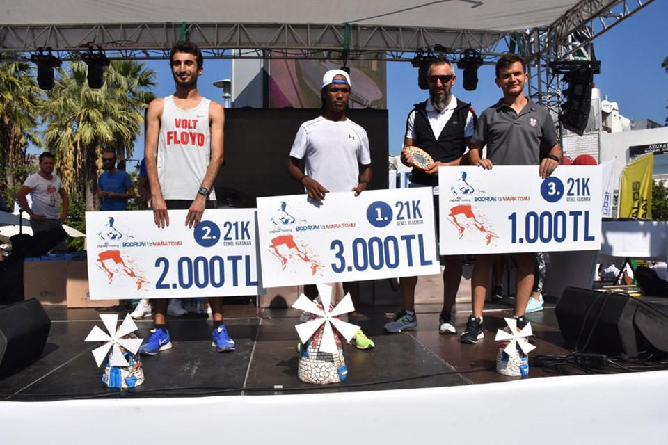 Bodrum’da Kımız & Bodrum Organizasyon A.Ş. tarafından bu yıl birincisi düzenlenen Çağdaş Bodrum Yarı Maratonu, 7 ülkeden 1.200 sporcunun katılımıyla gerçekleşti. 3 gün süren ve adeta bir festival havasında geçen organizasyonun son gününde Halikarnassos 5K, Karia 10K, Myndos 21K kategorilerinde dereceye giren sporseverlere madalyaları takdim edildi. Katılımcıların Bodrum’un tarihi atmosferinde yarıştığı 21 kilometrelik yarı maratonda birinciliği erkeklerde Fetene Alemu, kadınlarda Sebahat Akpınar alırken; Karia 10K kategorisinde erkeklerde Resul Çelik, kadınlarda İpek Öztosun; Halikarnassos 5Kkategorisinde ise erkeklerde Keyfalew deja Burise, kadınlarda Sıla Ata parkurları en hızlı tamamlayan isimler oldu. Yarışlarda dereceye giren isimlere, madalyaları Bodrum Belediye Meydanı’nda düzenlenen törenle verildi.