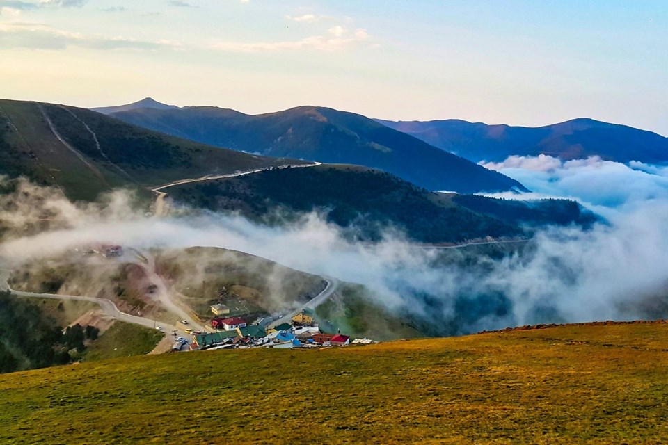 Antik çağlardan beri ticaret yolları üzerindeki önemini koruyan ve Rumca ‘Geçit’ anlamına gelen Zigana dağının zirvelerinden izlenen gün batımı manzaraları sisle buluşunca izleyenlere büyüleyici görüntüler oluşturuyor.