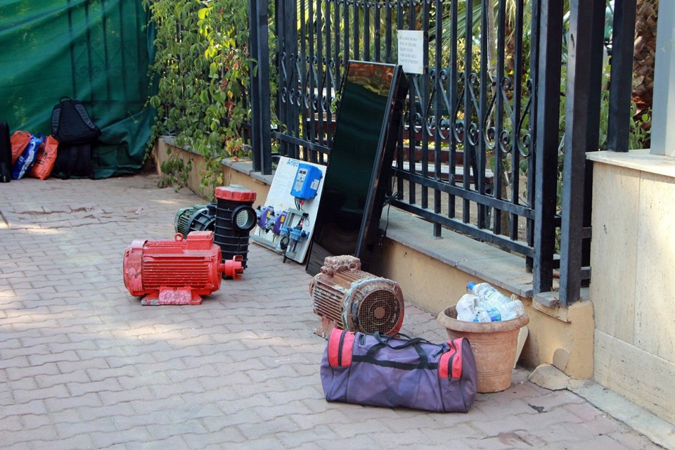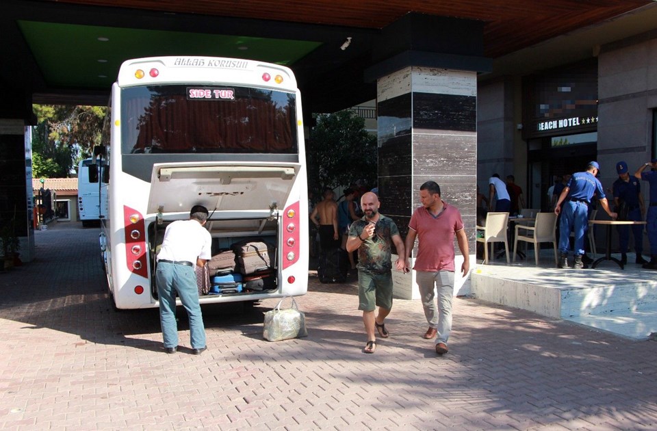Otelde bulunan yerli ve yabancı turistler, acenteleri tarafından otobüslerle başka otellere götürülürken, icra takibi başlatan firmalardan birisinin turistlerin şaşkın bakışları arasında otelin havuz dinamoları başta olmak üzere birçok malzemeyi sökerek götürdüğü gözlendi.