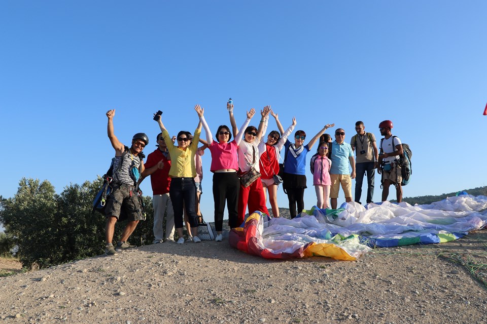 Yamaç paraşütüne binen Ryo Yun da Pamukkale üzerinde uçmanın fantastik bir duygu olduğunu belirterek, herkesi Denizli’ye davet etti.
