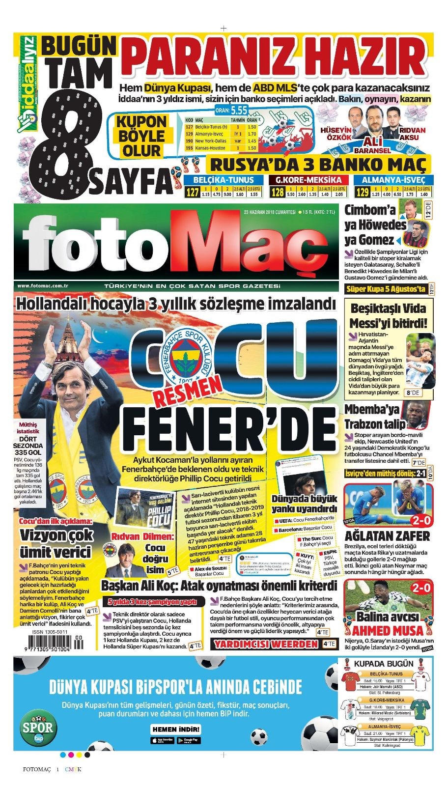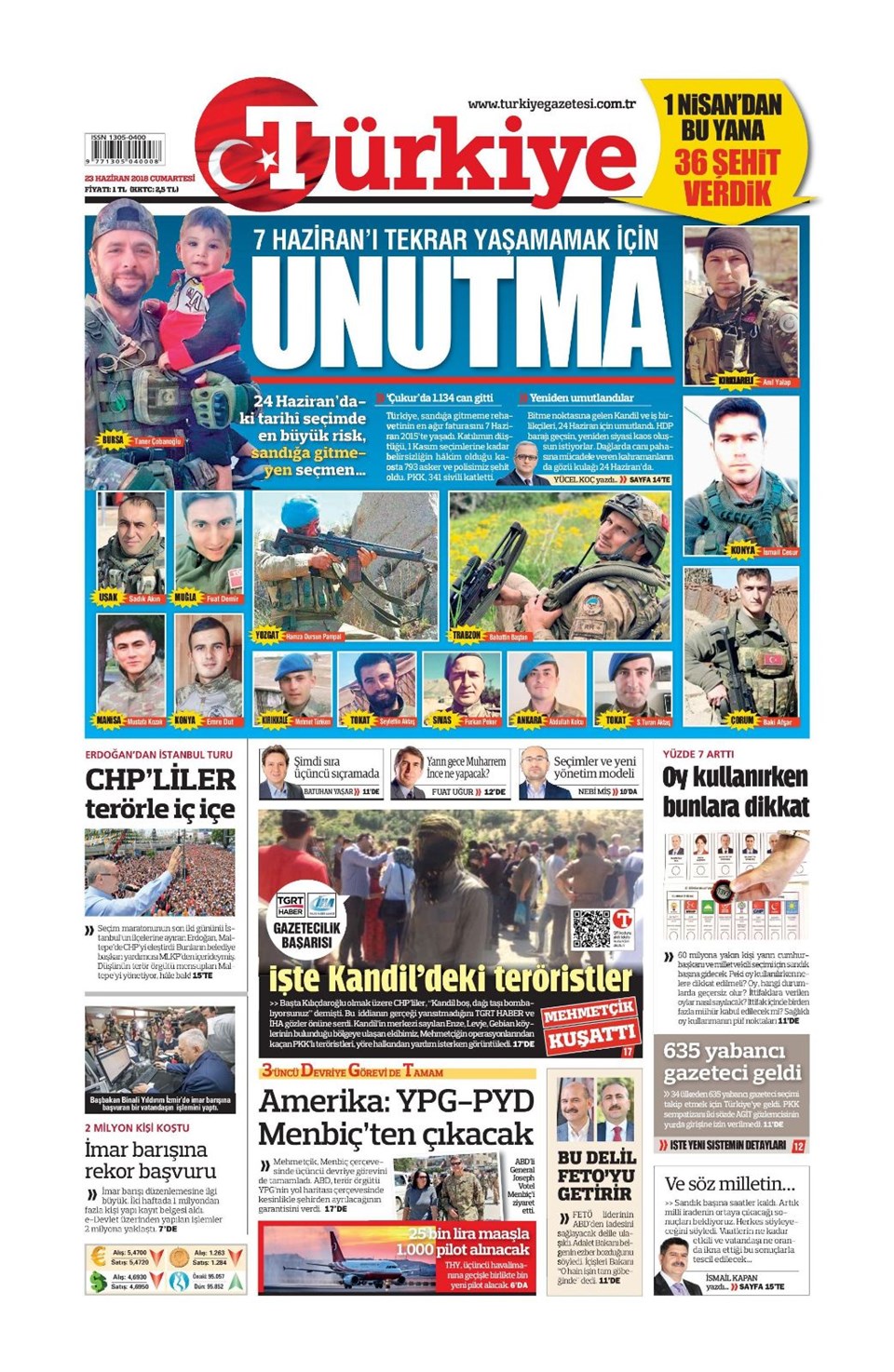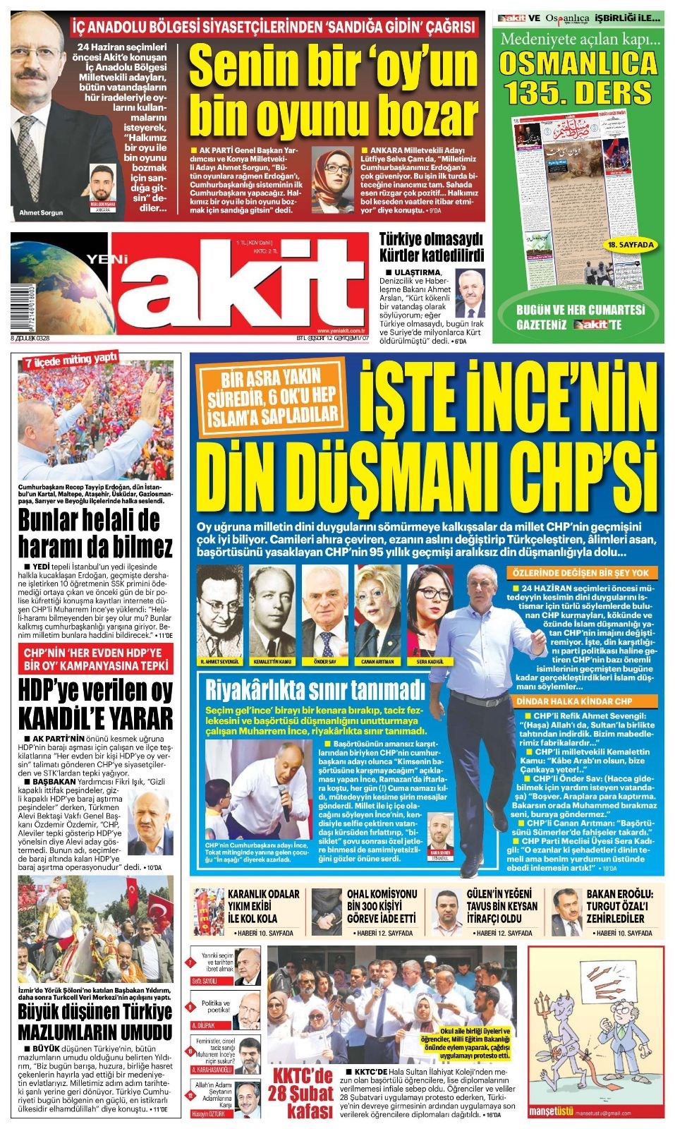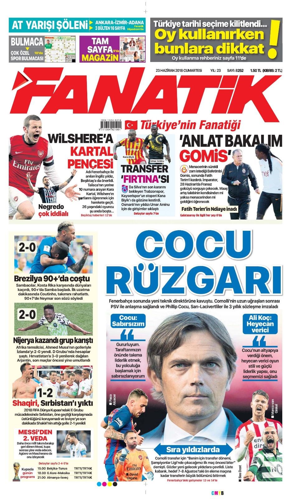 “Bugünkü gazete manşetlerinde neler var? Gazeteler Türkiye ve dünya gündemine ilişkin bugün hangi manşetleri attı? Hangi haberler gazete manşetlerinde geniş yer buldu? Gazetelerin birinci sayfalarında neler var? 23 Haziran 2018 tarihli Milliyet, Hürriyet, Habertürk, Vatan, Türkiye, Takvim, Star, Sözcü, Sabah, Posta, Dünya, Cumhuriyet, Aydınlık, Akşam, Yeni Akit, Yenibirlik, Yeni Şafak, AMK, Fotomaç, Fanatik gazetelerinin manşetlerini okuyun.”