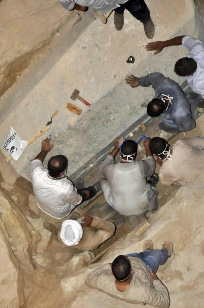 • Arkeologlar, ejiptologlar ve antropologlardan oluşan bir ekibin ortak çalışmasıyla 2500 yıllık lahit bu sabah erken saatlerde açıldı.