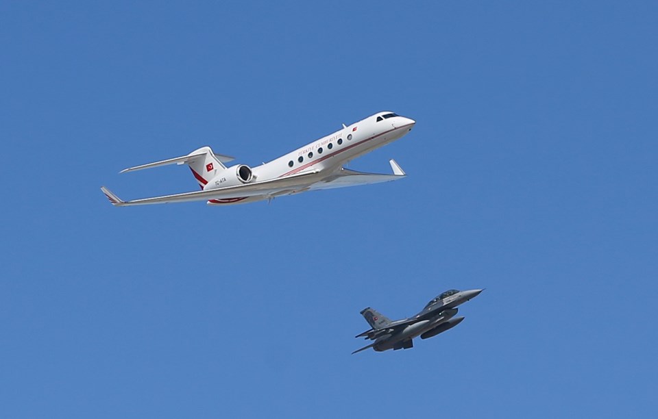 Cumhurbaşkanı Erdoğan’ı taşıyan uçağa, Milli Savunma Bakanı Hulusi Akar da F-16 ile eşlik etti.