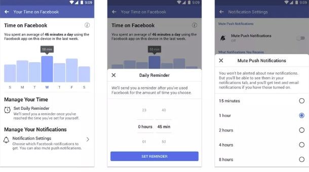Sosyal medya devi Facebook, sosyal medya bağımlılığıyla mücadele için düğmeye bastı. Facebook ve Instagram’a yeni eklenen özellikle kullanıcılar her gün ne kadar bu uygulamaları kullandığını görerek, süre sınırlaması da seçebilecek. Yeni özellikle Facebook ve Instagram ‚push‘ bildirimleri de istenen zaman aralıklarında sessize alınabilecek.
