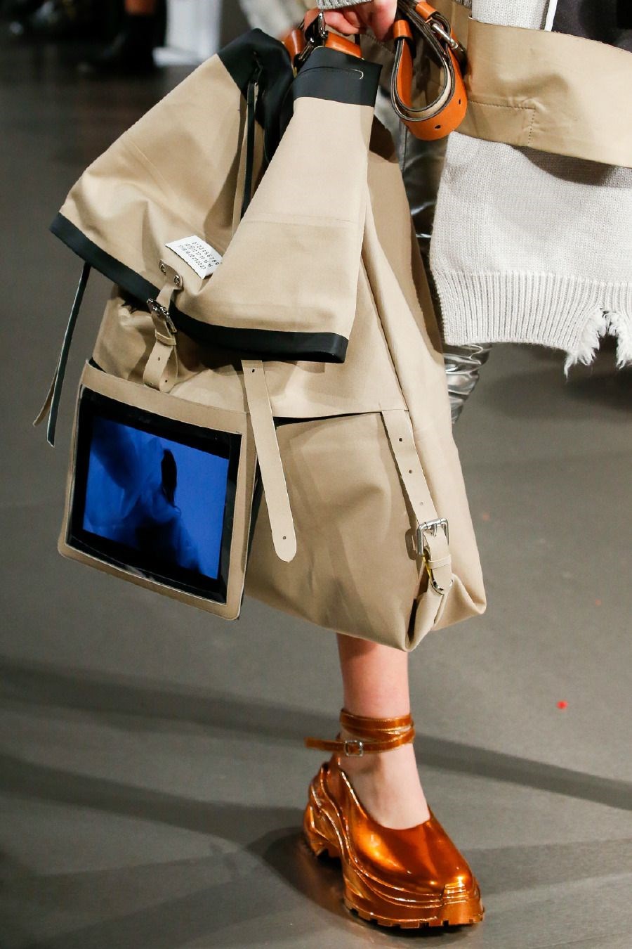 vogue.com.tr’nin haberine göre: Maison Margiela İlkbahar/Yaz 2019 koleksiyonunda siber dünyaya felsefi bir yaklaşım getiren John Galliano, iPhone XS ve iPad’leri modellerin ayak bileklerine ve çantalarının arkalarına yerleştirerek ardında kocaman bir soru işareti bıraktı. -