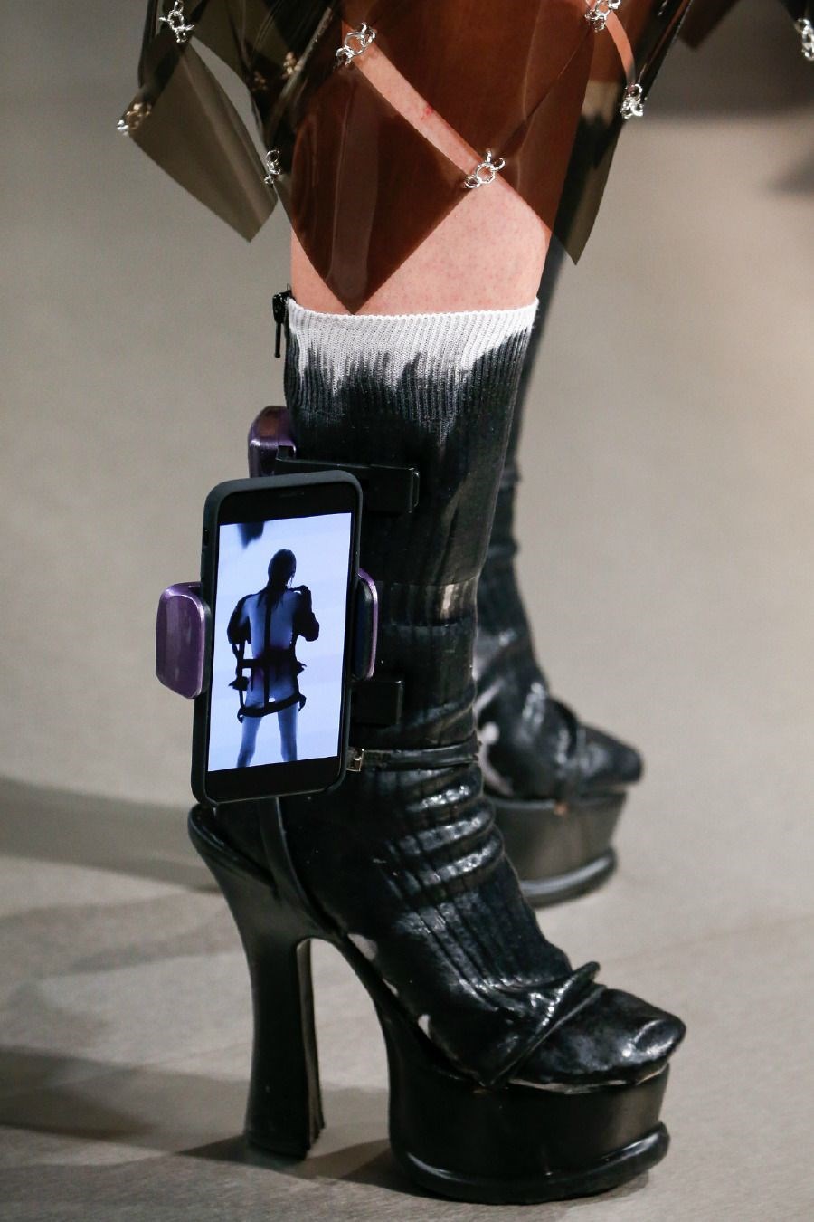 Maison Margiela’nın yüksek moda sahnesinde bunu ilk görüşümüz de değildi; Sonbahar/Kış 2018-19 koleksiyonunda da iPhone’ları modellerin ayak bileklerinde ve kollarında aksesuar olarak kullanmayı tercih eden kreatif direktör, tüm bunların tuhaf bir rastlantıdan ibaret olmadığını gösterdi. -