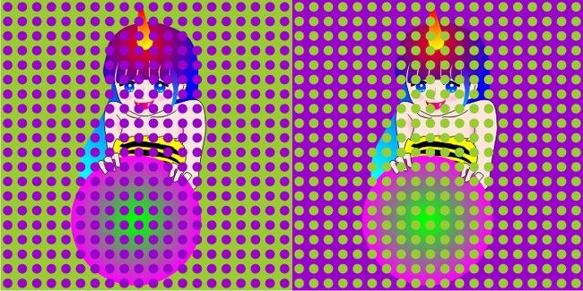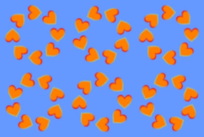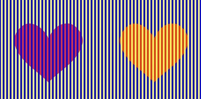 Soldaki kalp yeşil, sağdaki pembe görünüyorama gerçekte ikisi de gri.