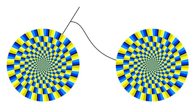Bisikletin tekerlekleri dönüyormuş gibi görünüyor.