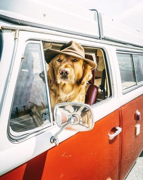 Golden Retriever cinsi Aspen, köpeklerin seyahatlerde de insanların en iyi dostu olduğunu kanıtlıyor.