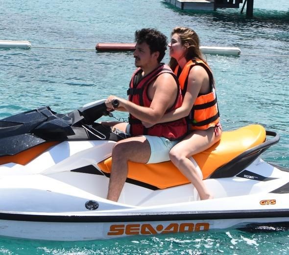 Genç çift önceki gün X Beach’te görüntülendi. Önce jet-ski’ye binip hız denemesi yapan sevgililer, ardından denize girip serin suların tadını çıkardı.İşte çiftin tatilinden yansıyan diğer kareler…