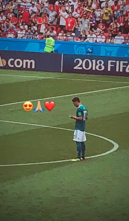 Gülşe, sevgilisi Mesut Özil’e Almanya forması giyerek destek olduğu ve tribünde çektiği görüntüleri sosyal medyadan da yayınladı.İşte Gülşe’nin o kareleri…