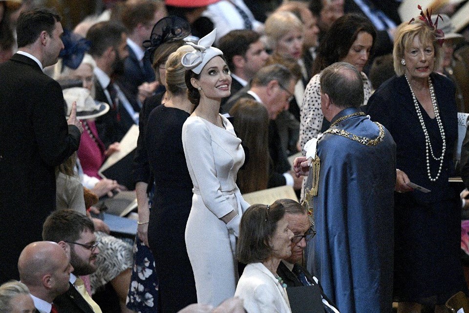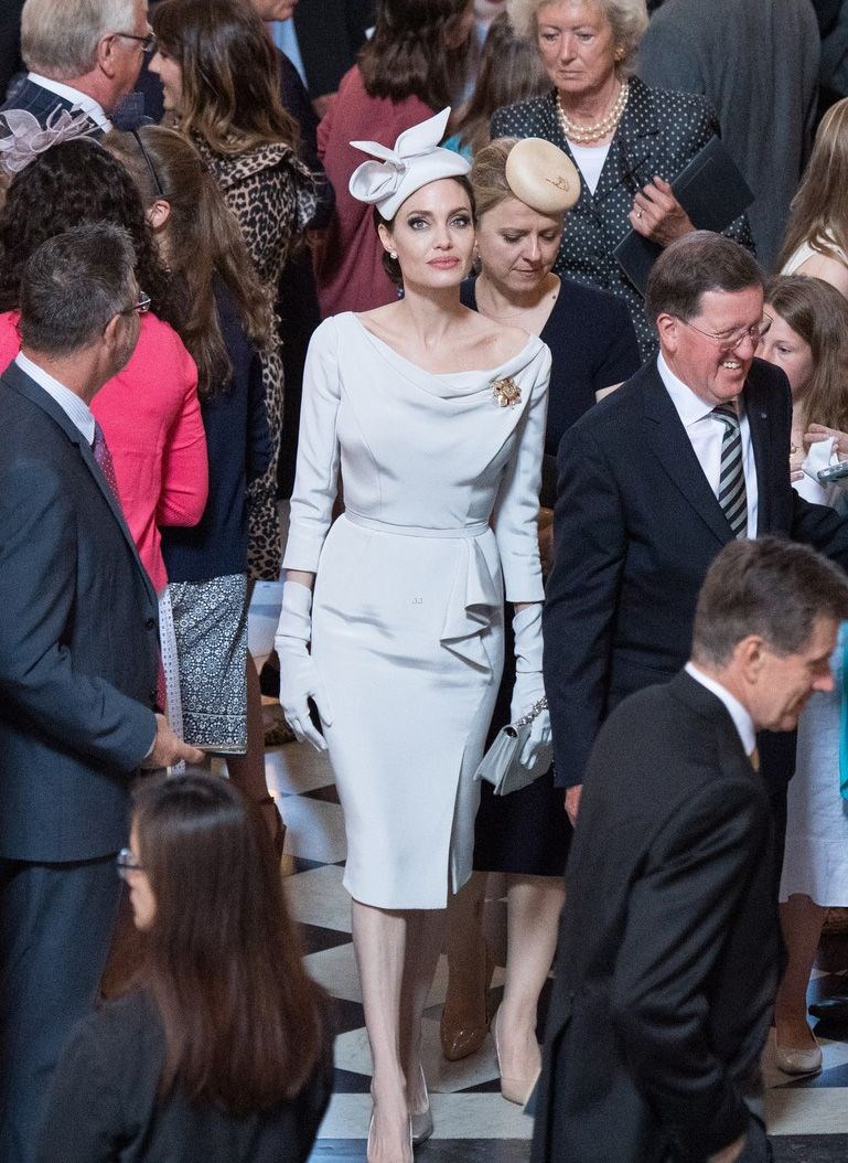 Londra’da St Paul Katedrali’ndeki St Michael ve St George’un 200. yıl dönümü kutlamalarına katılan Jolie, kıyafet seçimiyle büyüledi.