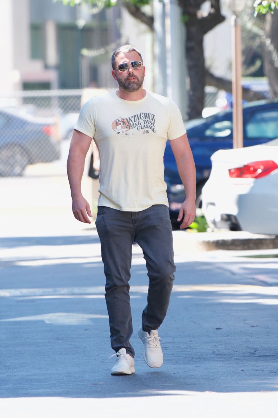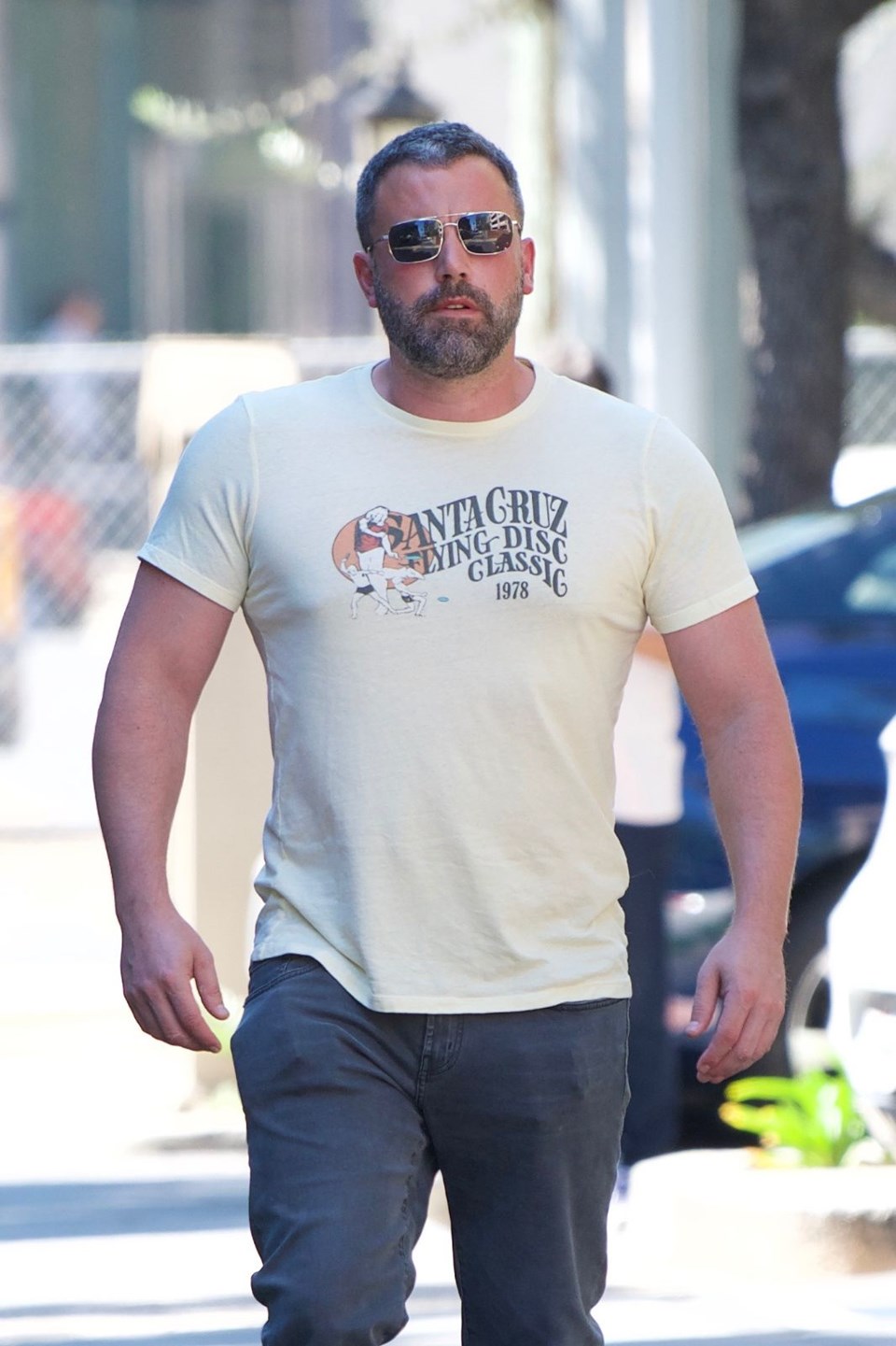 Dar bir tişört giyen Affleck’in özellikle omuz ve kol kaslarında belirgin bir şişkinlik dikkat çekti.